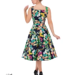 50s Imitation Black White Floral Tea Dress: