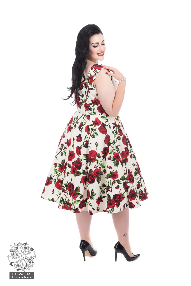50s Ditsy Rose Floral Summer Dress in Plus Size (18-26):