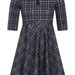 Our brand new Anna Check Swing Dress is a perfect addition to any winter wardrobe. The gorgeous check print adds layers of subtle colours to your outfit, while the classic shape perfectly balances the overall look. This style sports a boat neckline which sits neatly on a fitted bodice to create a lovely shape which flows down into a swing skirt, reminiscent of the 1950s. The ¾ length sleeves work well with the flowing skirt, which also has hidden pockets for extra ease! This style is easy to wear with comfortable shoes, making it the perfect go to outfit this autumn/winter.