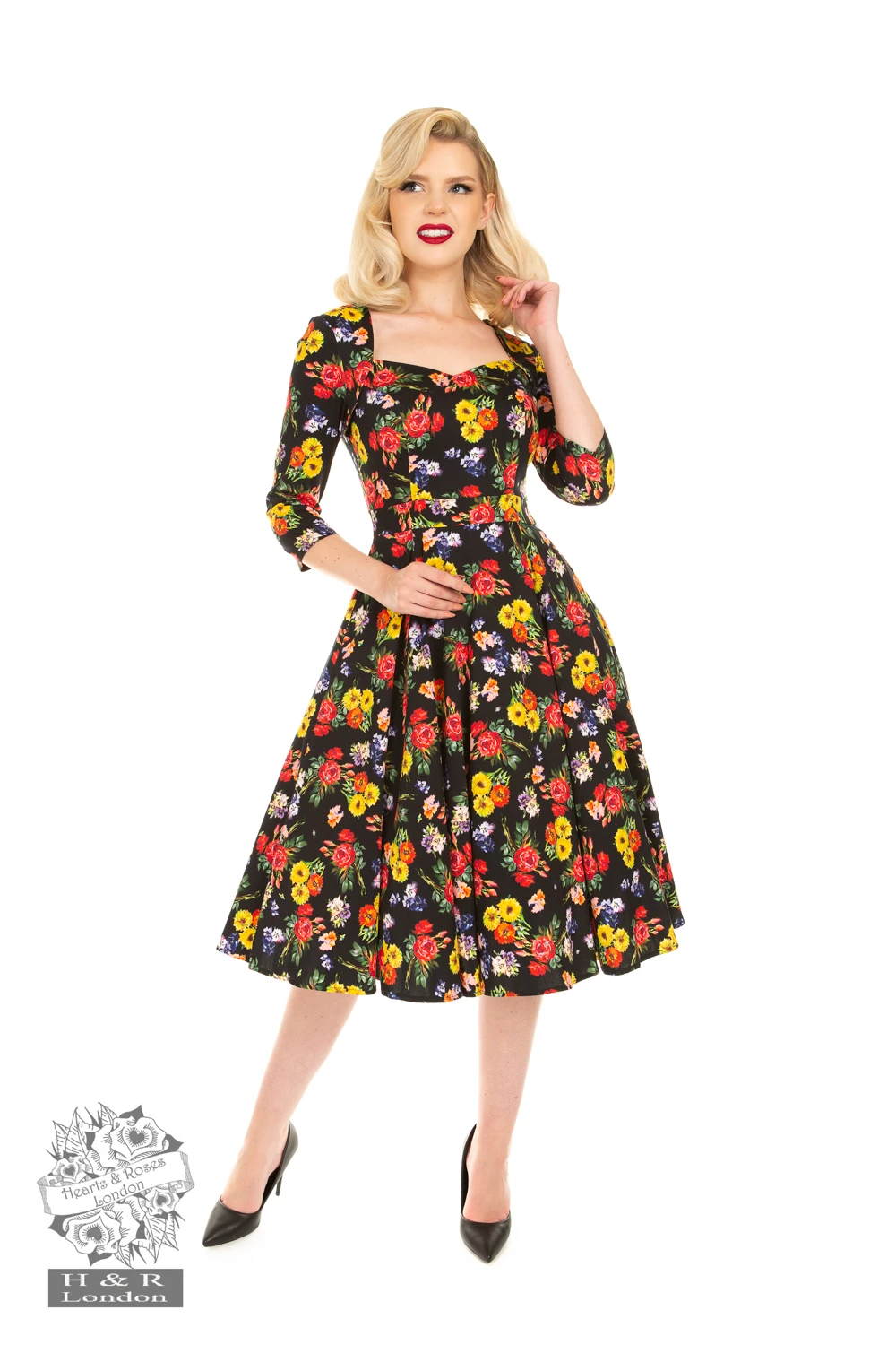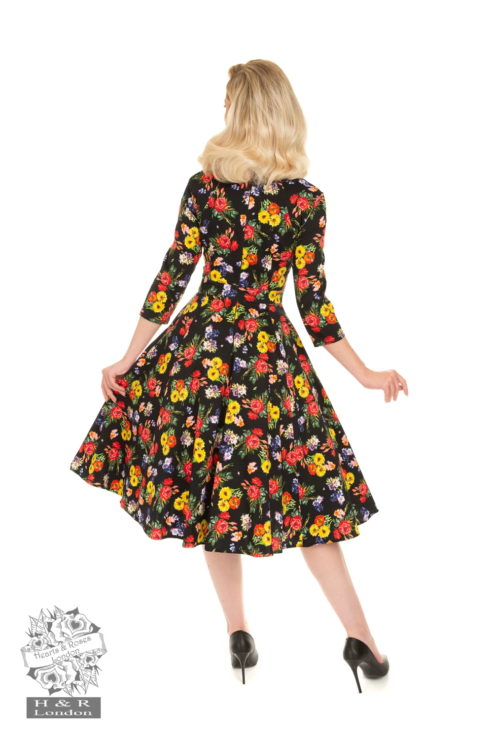 Our new Ashley Floral Swing Dress is a classic piece. Its bright florals pop against the dark black base, making it a magical winter print which stands out from the crowd. The sweetheart neckline works wonderfully with the shoulder panel to add that added design element that catches the eye and the waistband fits neatly above the full swing skirt. We have added our classic concealed side seam pockets to keep your treasures safe. Add your favourite jewellery to take this style from day to night!
