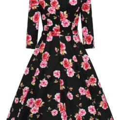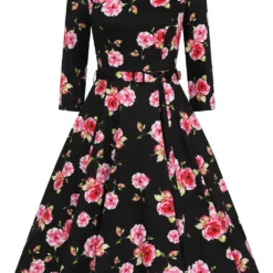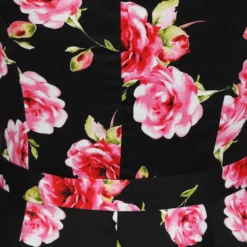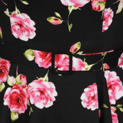 Our new Ava Floral Swing Dress is a bright vintage number! The vivid pink rose is an eye-catching print! We have added a beautiful notch at the front of the neckline to add detail to our classic boat neckline. The ¾ length sleeves are practical, and the gathering, decorative buttons and slit all work together to boost that feminine feel. The waist is belted to give that vintage silhouette and we have kept our favourite hidden pockets to make your life easier. Style this piece with vintage pumps and you’ll be ready for the town!