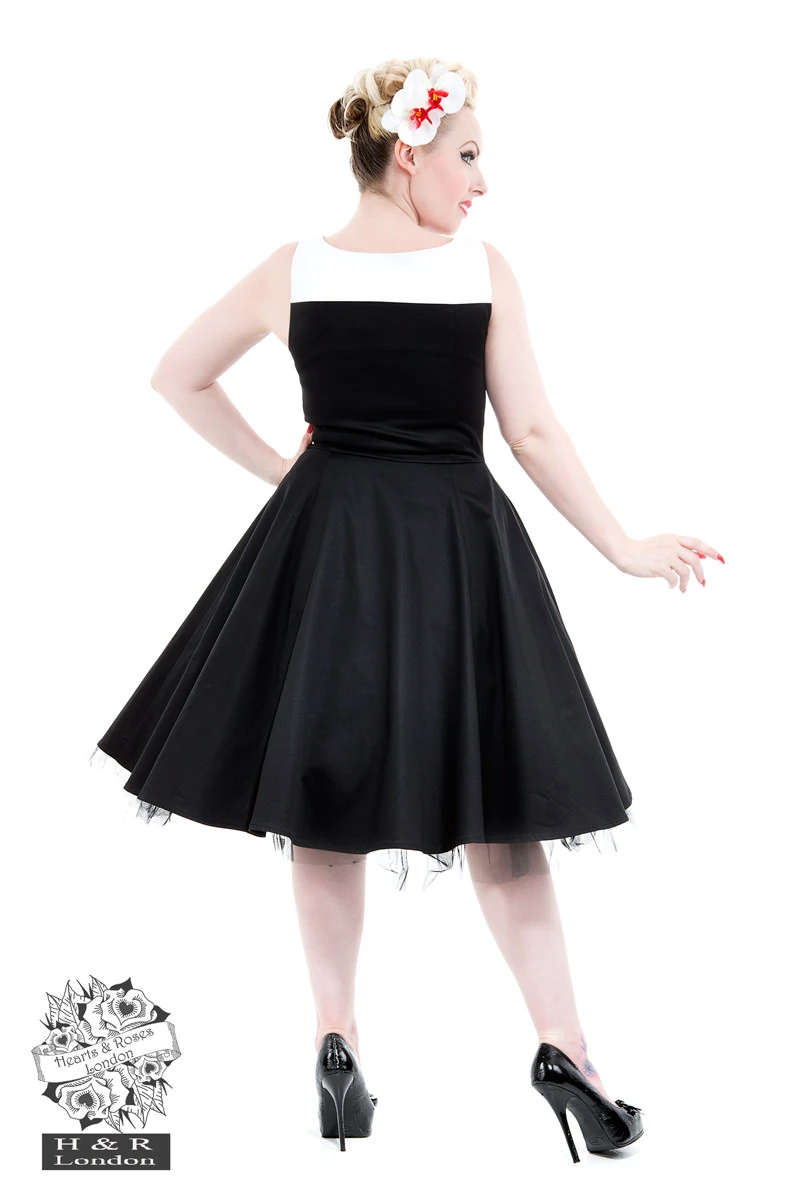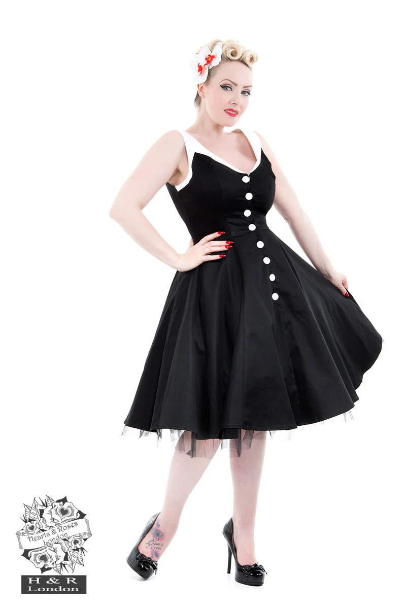 This dress has a lovely blend of black and white incorporated within the dress. Whilst it is majority a black dress, it has white buttons to go with the top bit of the dress which is in white. She holds a V-neck Neckline and a fitted bodice to keep your figure in shape. Go on ladies, sometimes being simple and elegant is more than enough 😉