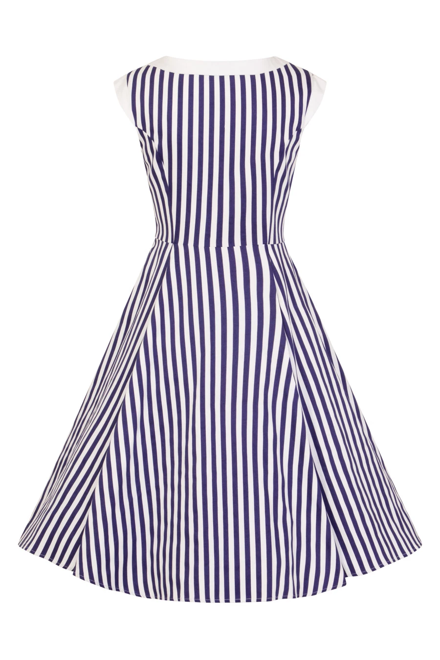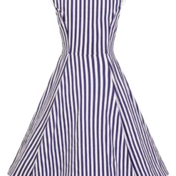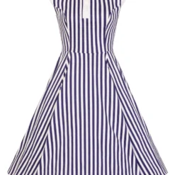 Strip off your summer wish list because our Blue Stripe Hepburn dress is the one for you. Summer couldn’t get any better with this classic striped design. If you haven’t found your perfect summer match, why not go for the striped theme. The neckline features a round neckline, with a 3 button detailing sitting just on the chest. The soft stretchy cotton fabric is a joy to wear. You just can’t miss out on this classic vintage piece.