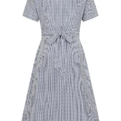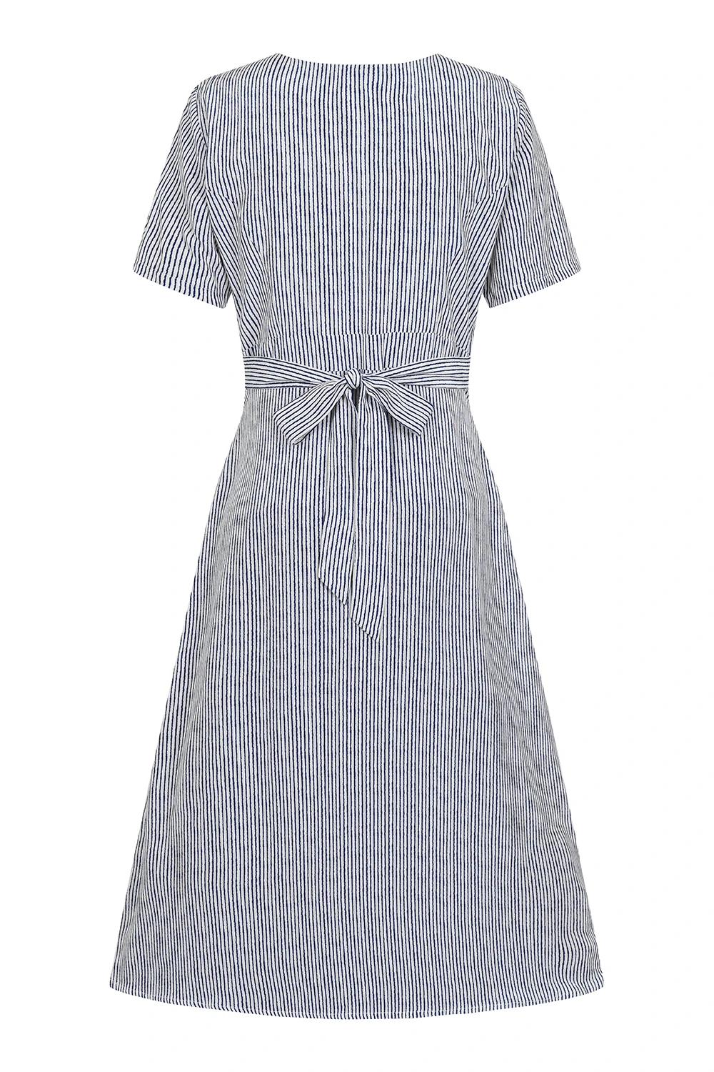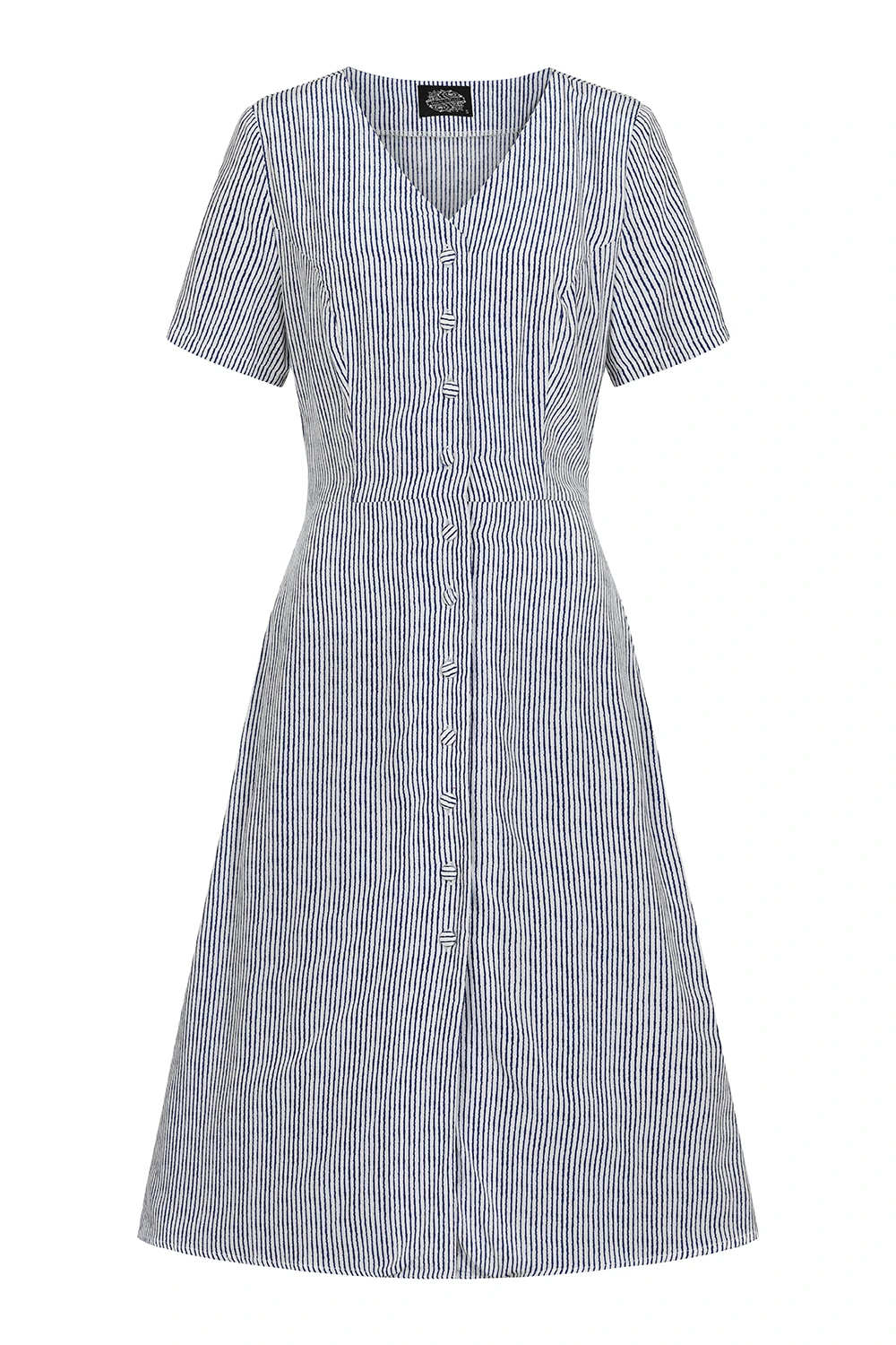 Our brand new Cecilia A-Line Summer Dress is designed to be your go to summer piece. Its relaxed look makes this such an easy piece to wear this season. Effortlessly stylish, this blue and white striped print catches the eye with its subtle design details. The fabric is light and airy, perfect for those warm summer days, working well both in the city and also the countryside. Dress this piece up with standout flats or heels, or add a rock n roll twist and style with chunky boots for that added rockabilly edge. Accessories can be left simple or added in abundance, this really is a dress in which you can show your own individual style!