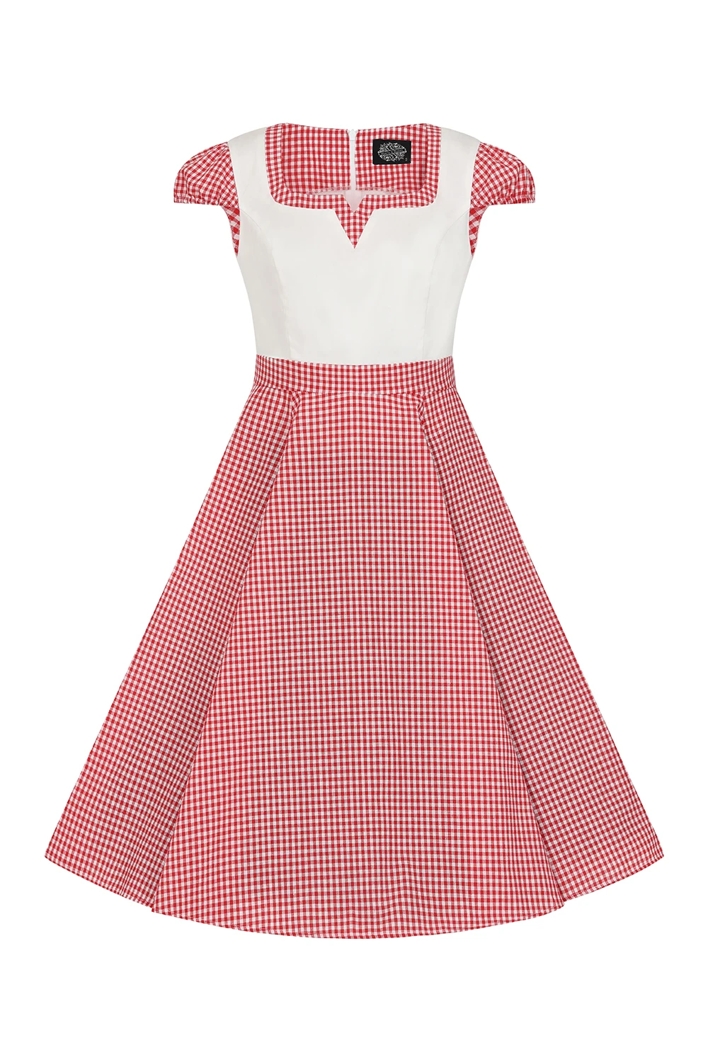 Check out our brand new Chelsea Check Swing Dress! Designed with an incredibly sweet red gingham print, balanced out with a white bodice, this style will be your go to this summer. The easy to wear shape makes this dress good for all occasions, dressed up or down by adding your favourite accessories or glam shoes to finish off the look. The square neckline with front notch is a really flattering shape, alongside the cap sleeves and full swing skirt. We haven’t forgotten the super handy hidden side pockets to hold all your treasures!