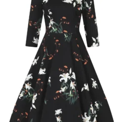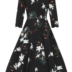 Ladies, we know you fell in love with our Dorothy Lilly but meet our new Diana Lilly swing dress who is bound to take over this autumn. We revamped the style with the same print, just set on a black cotton fabric. The print features lilies on a forest background, while the bodice details a simple rounded neckline with a decorative bow at the front. Diana will have you swinging into the season, and what better way to flaunt a vintage piece. If you want to meet her sister from last season, have a peep at our Dorothy Lily dress, (4258). These two beauties are truly special to us.