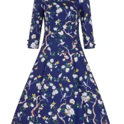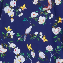 While the birds chirp and the sun begins to set the enchanted garden floral dress, sets the theme for autumn winter. Detailing a floral print with a gorgeous garden theme, with butterflies, birds and roses. A magical joy to wear, and a multipurpose dress for the day or evening. To finish off, the print is set on a navy purple cotton stretch, which allows you to stay comfortable while looking chic throughout your day.