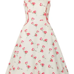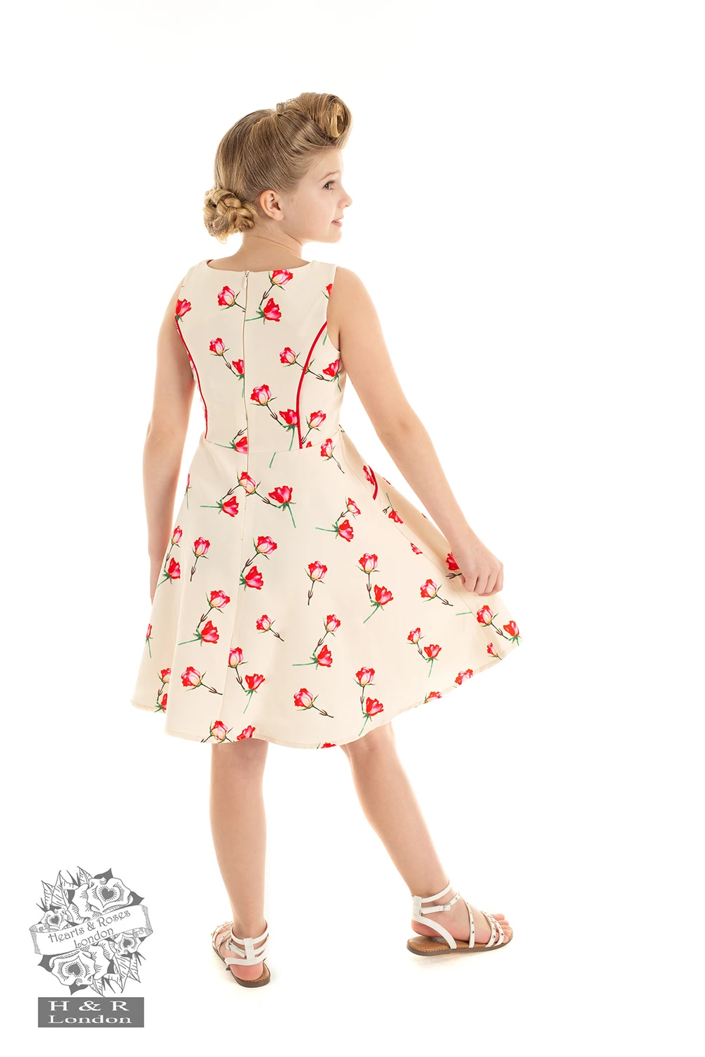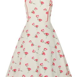 The Rosie dress is beautifully decorated with a delicate rose print. It has an intricate pink detail from the bodice detailing down to the swing skirt of the dress. This dress is designed with your comfort in mind as the fabric is breathable and soft to the touch. Rosie will keep you entertained all day long with the full swing skirt that can be elegantly paired with a petticoat for that added volume or can be effortlessly worn without, perfect for twirling in.