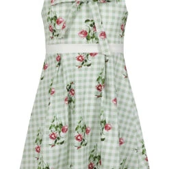 The Summer Rose swing dress is a new style which will melt your heart. Its gathered cap sleeves adds a sweet touch to this kids style. The waist pleats all around the dress allow for full movement so your little one can play with no restrictions. We have also added a rounded collar in white to match the stretchy waistband, topped with a cute bow at the neckline in the perfect summer print.