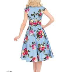 Hearts & Roses London’s Glorified Ella Dress will present your lovely looks when you’re in. Cut from a stretchy cotton blend, this light pink swing dress features a beautiful delicate floral print with flowers of blue, pink and goldenrod with bright green stems. A graceful halter neckline sets the dress apart from the rest.