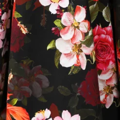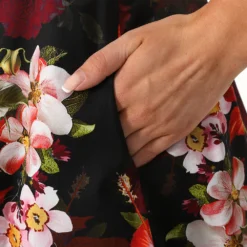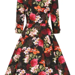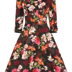 Welcoming our brand new Kali Floral Swing Dress, bursting with winter florals, this style is easy to wear and full of charm. The delicate floral motif flutters across the entire dress, giving accents of colour to this stand out style. The lapel collar sits neatly on the fitted bodice and leads down to delicate buckled belt. The waist is fitted and sits ontop of a beautiful swirling swing skirt which is reminiscent of the fabulous 50s. We haven’t forgotten the handy hidden side pockets which are there to add ease to this piece and hold your important items for you. This style can be dressed up or down by adding your favourite accessories, making it a great go to style. Just add your favourite pair of shoes and your outfit is complete!