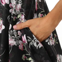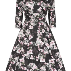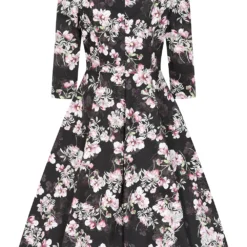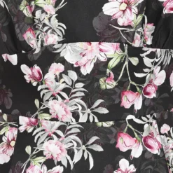 The newest addition to our autumn/winter collection is our Kate Floral Swing Dress. Designed with spring florals in mind to keep your winters bright, this style is great for an evening out or for a day in the city. The sweet pink and white florals stand out against the black print base, making this style eye catching during those darker months. The style is designed with a simple and elegant silhouette. The boat neckline is chic and sits neatly above the bodice which features slight gathering at the bust. The shaped waistband also adds that extra divine design detail, making this dress super flattering for all. The swooshing swing skirt is a beautiful nod to the 50s style dresses we know and love. This easy to wear style is ready to go, just add your favourite flats or heels and your outfit is complete!
