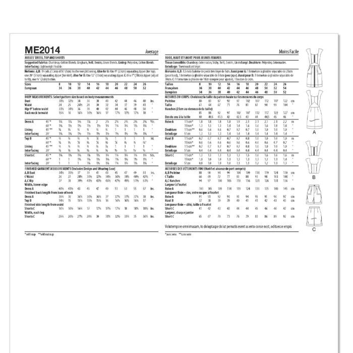 Know Me Sewing Pattern 2014 (Y5) Dress, Top & Shorts by Duana M. is a Dress with cut outs in front and back has horseshoe neckline and extended cap sleeves. Dress and crop top both have front separating zippers and boning at seams. Bermuda shorts have folded cuff, fly front zipper and pockets with topstitching.