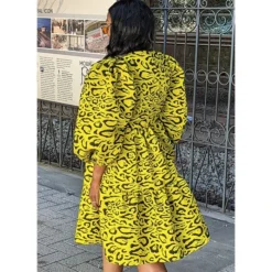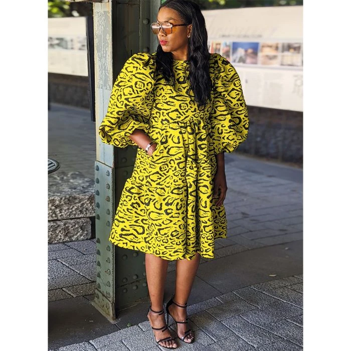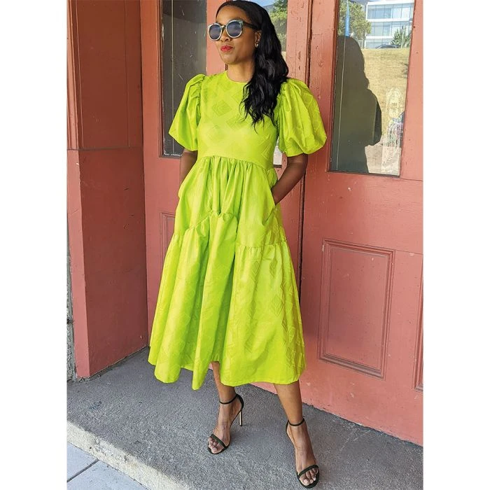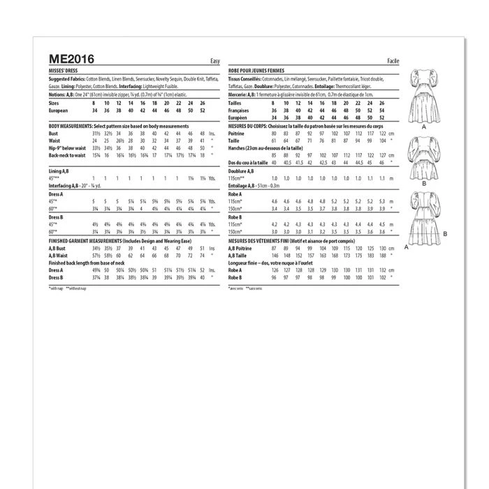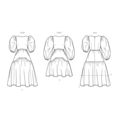 Know Me Sewing Pattern 2016 (Y5) Misses Dress by Beauty’ J ‘adore is a Dress with lined bodice features shaped tiers with gathers at front, high neckline, bust darts, slant pockets, and invisible back zipper. Dress includes full sleeves in mid or long length options and elastic at sleeve hem.