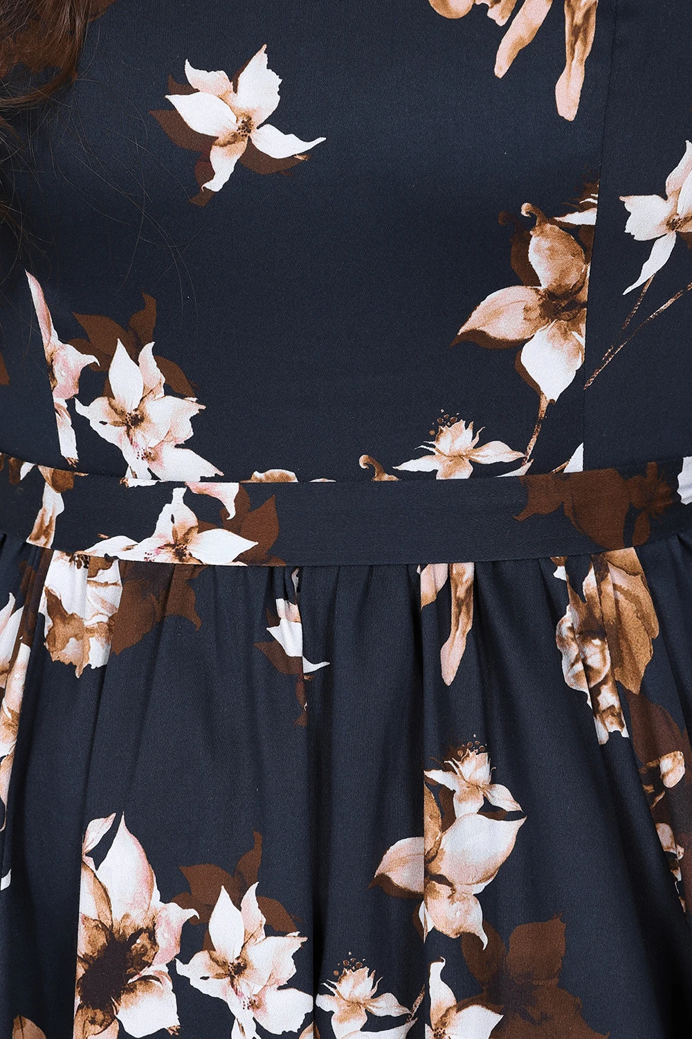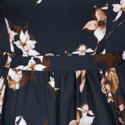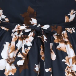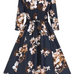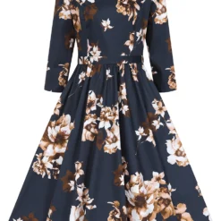 Our brand new Laura Floral Swing Dress is a perfect winter swing to wear day to day. Our beloved winter swing dress comes with a fine beige rose print on a dark black base giving you a chic retro look. The tie-belt and stretchy cotton fabric will give you the perfect vintage silhouette without compromising on comfort. This style is great for day or night with its beautiful print and full swing skirt, which is a show stopper on the dance floor! The rounded neckline is elegant and sits neatly with the bodice. This style can be worn as is or with one of our cardigans for those colder days. Just add shoes of your choice and your outfit is complete!