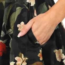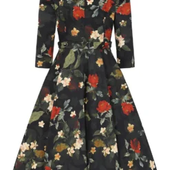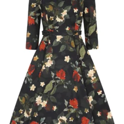 Our stunning new winter swing, the Leia Floral Swing Dress, has just arrived and we are so excited to share it with you. This gorgeous dress is made up of our classic stretchy cotton which is soft and comfortable to wear. The print is perfect for a winter’s walk or a coffee out in the town, with its muted red and yellow petals, beside soft green leaves, all on an anchoring dark black base. This print speaks for itself with its subtle beauty. The style itself is simple, letting the print work in harmony with it. The boat neckline with front notch works with the detailed waistband and flowing skirt. This style can be worn alone, just add shoes and you’re all set!