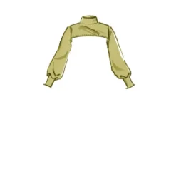 Dress and shrug can be styled in multiple variations. Views A, B and C are different style of shrugs. View A has a turtleneck and long sleeve. View B has a cross front. View C has a turtleneck and crossover. Dress comes in two lengths and has a V-neck in front and back. 8349