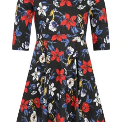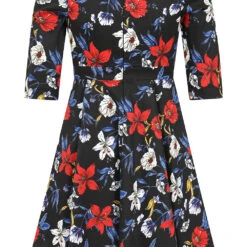 Welcoming our brand new Maria Floral Swing Dress in Kids. Made in our comfortable cotton blend fabric, this style has been designed to wear with ease and comfort. This fabulous floral is made up of bursts of reds, blues, whites and yellows, all laid out on a dark black base to let the colours pop. The shape features a classic boat neckline and waistband. While the simple shape of this piece allows the print to speak for itself. Made with our classic stretchy cotton to allow non-stop playing, this style is perfect for all events. Just add your favourite shoes and you’re all set!