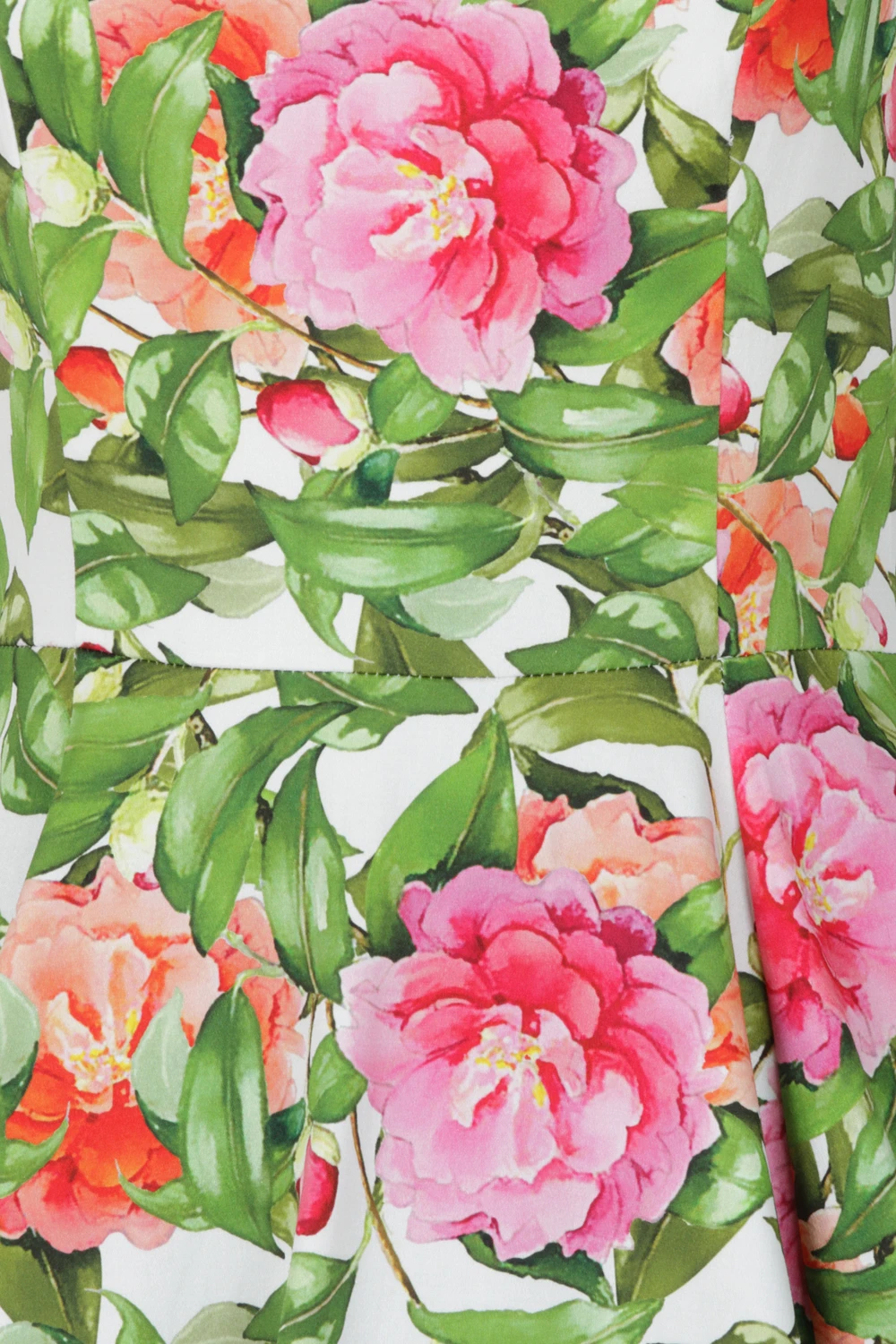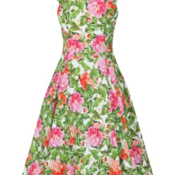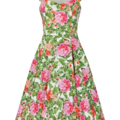 Embrace the summer with this divine swing dress! In a swing style, with a gorgeous rose print and concealed zip fastening at the side. Not to mention the beautiful panel detail on this dress and added cap sleeves. Let’s not forget about the amazing side seam pockets, making this dress the perfect vintage style for the modern day woman. This is the perfect dress for your 9 to 5 and then dress this up with some heals and added accessories for a happy hour with the girls.