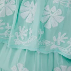 - Maxi length, tiered picu detailed skirt in a flowing cut balances the shoulder-skimming neckline