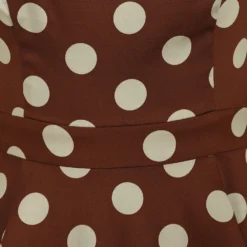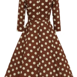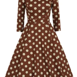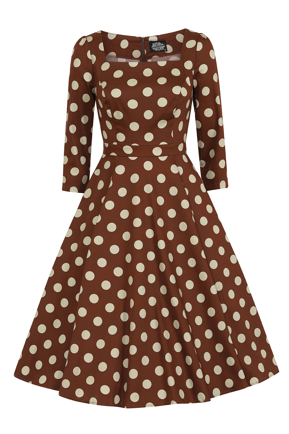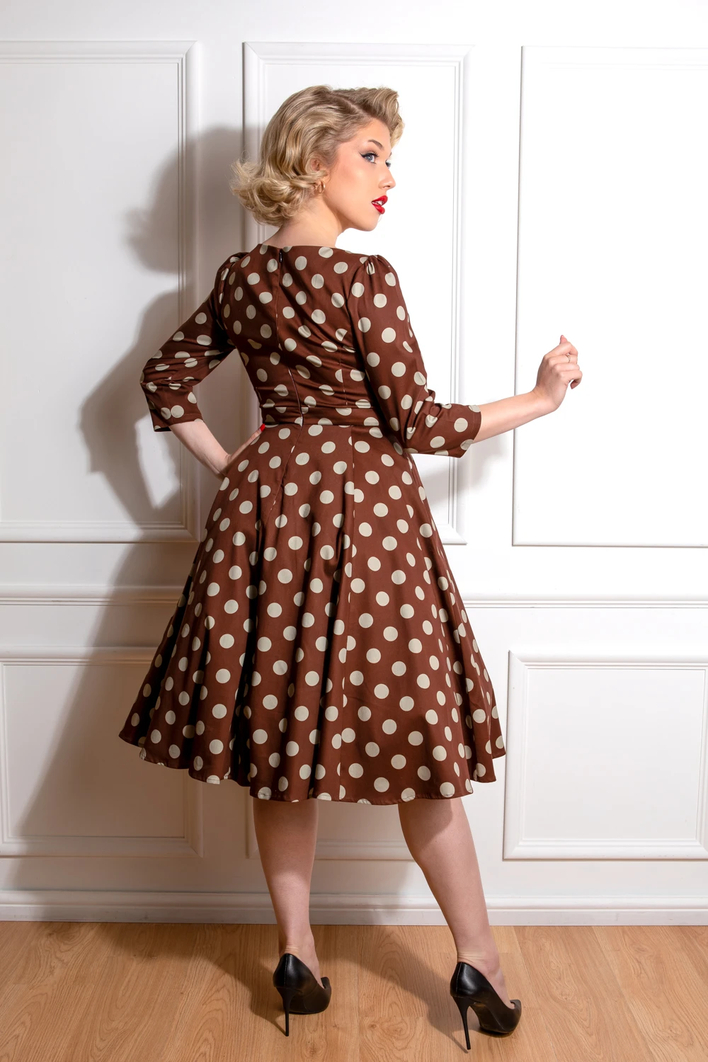Looking for an easy to wear go-to winter style this season? Look no further as our new Robin Polka Dot Swing Dress is an elegant winter piece made for the ages. Its square neckline is simply elegant and flattering for all. While the fitted bodice sits perfectly with the waistband above the full flowing swing skirt. Elegant in its look with its ¾ length gathered sleeves, this style is made for a picnic in the park, a stroll through the city or an evening event! This piece can be dressed up or down with bold accessories or a simple chain. The brown base with cappuccino polka dots have a warmth to them which will carry you through the winter season. Just add your favourite flats or heels and you’re ready to go!