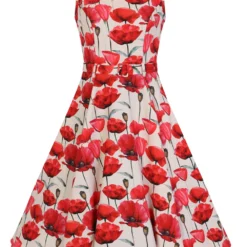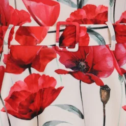 This sweet poppy swing dress is the perfect piece for adding a pop of colour to your wardrobe. Whether it’s a picnic in the park or an evening celebration, this dress will have you covered for all occasions. This style features a scalloped neckline, which plays perfectly with the bold poppy print and a self-covered rectangular belt for added elegance.
