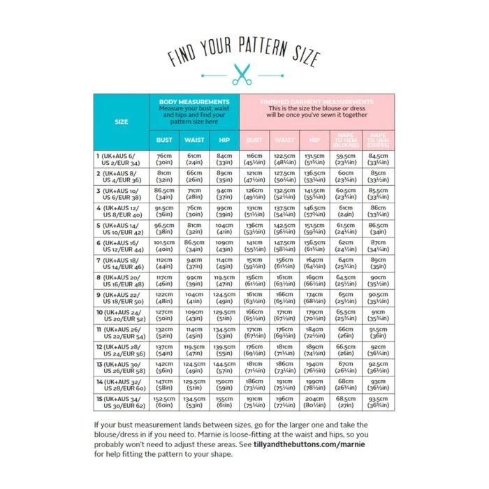 Tilly and the Butttons Sewing Pattern 1040 Marnie is a romantic, floaty and super swishy blouse and mini dress that will steal your heart. Keep it simple, or add the pretty tucks and ruffles. Sizes range from 6 to 34.