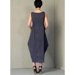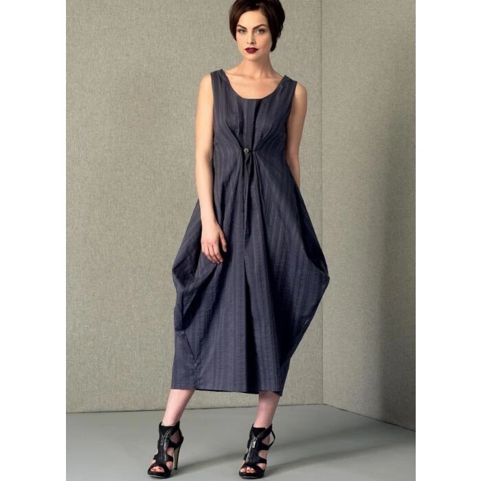 Vogue Sewing Pattern 1410 (A5) – Very loose-fitting, pullover dress has very narrow hem finish on neckline & armholes, front & back pleats, inside button/buttonholes forming drape & three adjustable lengths, French seams, & narrow hem. Shop the Complete Vogue Sewing Pattern collection, including Vogue Sewing Pattern 1410 (A5) at Abakhan. FREE Delivery Available & Earn Loyalty Reward Points on All Purchases. Size 6-14.