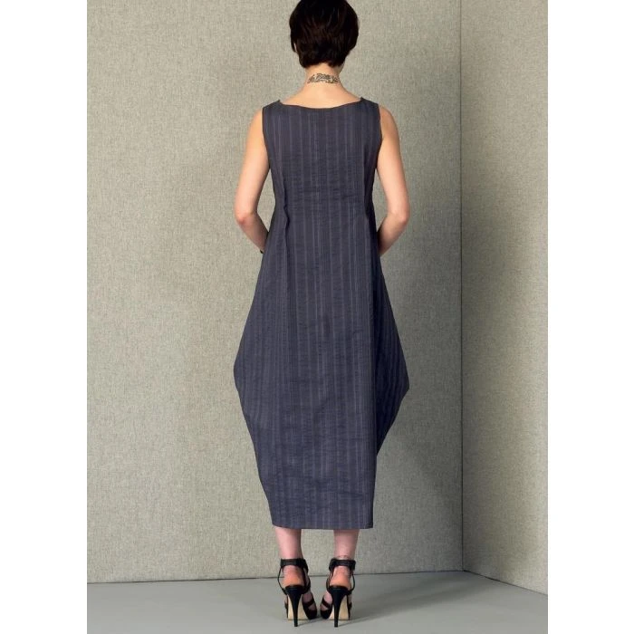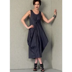 Vogue Sewing Pattern 1410 (E5) – Very loose-fitting, pullover dress has very narrow hem finish on neckline & armholes, front & back pleats, inside button/buttonholes forming drape & three adjustable lengths, French seams, & narrow hem. Shop the Complete Vogue Sewing Pattern collection, including Vogue Sewing Pattern 1410 (E5) at Abakhan. FREE Delivery Available & Earn Loyalty Reward Points on All Purchases. Size 14-22.
