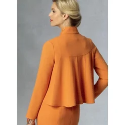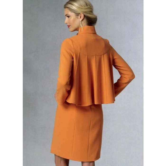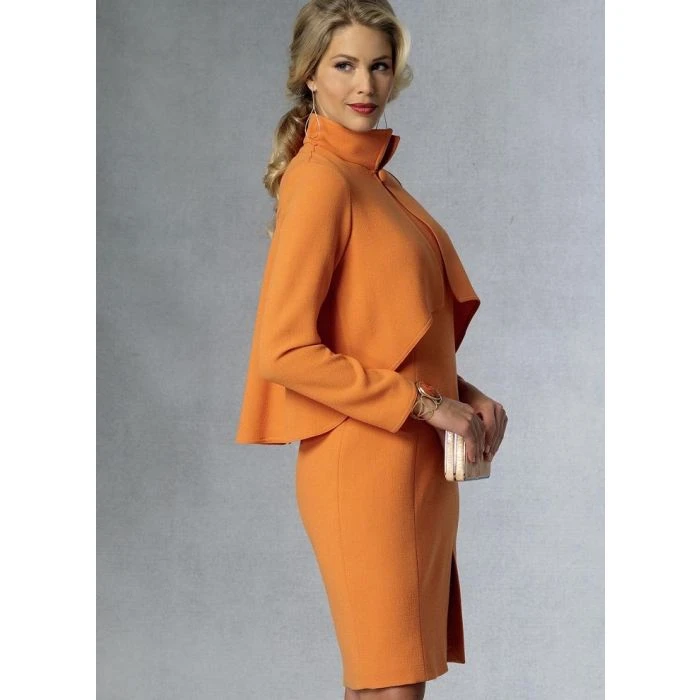 Vogue Sewing Pattern 1435 (E5) – Unlined jacket has collar, lined yoke back, back seam detail, flat-fell seams, shaped hemline, wrong side shows, narrow hem, & front button loop closing. Topstitching. Lined dress has princess seams, left side front slit & invisible zipper. Shop the Complete Vogue Sewing Pattern collection, including Vogue Sewing Pattern 1435 (E5) at Abakhan. FREE Delivery Available & Earn Loyalty Reward Points on All Purchases. Size 14-22.