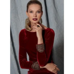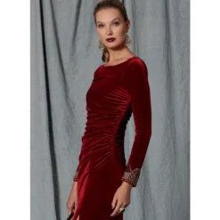 Vogue Sewing Pattern 1520 (A5) – Very close-fitting, lined dress has right armhole & left side gathers, lower left side seam with slit, back-V, bateau neckline, invisible zippers at back & sleeve seams, & train. Shop the Complete Vogue Sewing Pattern collection, including Vogue Sewing Pattern 1520 (A5) at Abakhan. FREE Delivery Available & Earn Loyalty Reward Points on All Purchases. Size 6-14.