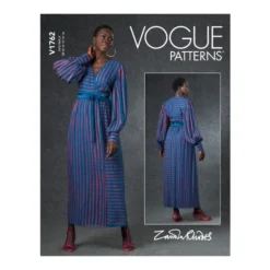 Vogue Sewing Pattern 1762 (B5) – Lined wrap dress (close-fitting through bust) has contrast binding, waistband & ties, bishop sleeves ending in cuffs with button & loop closure. Shop the Complete Vogue Sewing Pattern collection, including Vogue Sewing Pattern 1762 (B5) at Abakhan. FREE Delivery Available & Earn Loyalty Reward Points on All Purchases. Size 8-16.