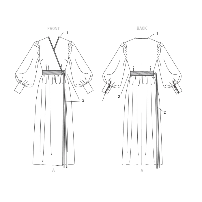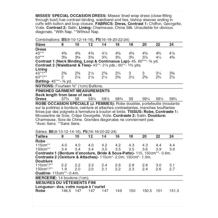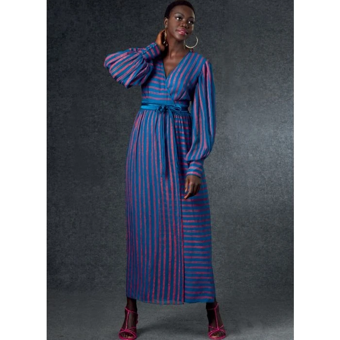 Vogue Sewing Pattern 1762 (F5) – Lined wrap dress (close-fitting through bust) has contrast binding, waistband & ties, bishop sleeves ending in cuffs with button & loop closure. Shop the Complete Vogue Sewing Pattern collection, including Vogue Sewing Pattern 1762 (F5) at Abakhan. FREE Delivery Available & Earn Loyalty Reward Points on All Purchases. Size 16-24.