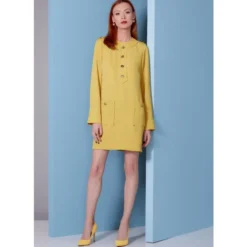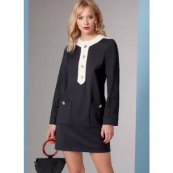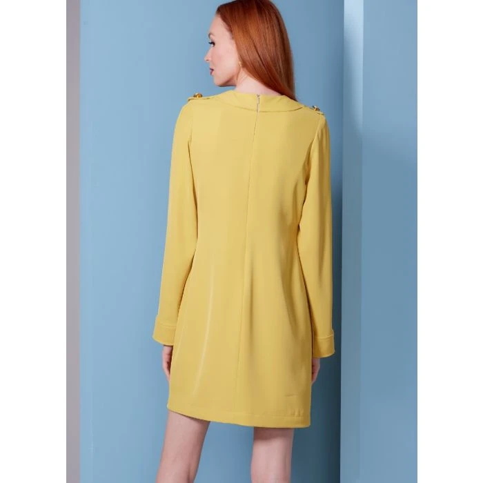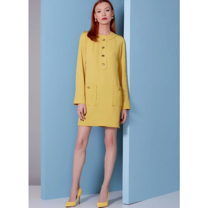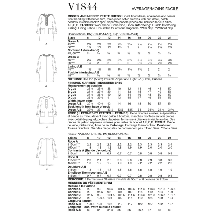 Vogue Sewing Pattern 1844 (F5) – Lined, fitted dress, epaulettes & center front banding with button trim, three-piece set-in sleeves with cuff detail, patch pockets, invisible back zipper. Separate pattern pieces are included for cup sizes A, B, C, D. Shop the Complete Vogue Sewing Pattern collection, including Vogue Sewing Pattern 1844 (F5) at Abakhan. FREE Delivery Available & Earn Loyalty Reward Points on All Purchases. Size 16-24.