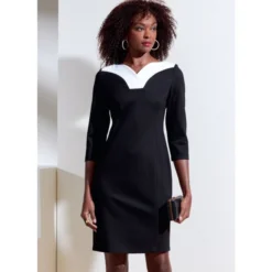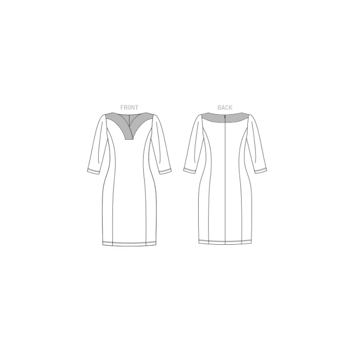 Vogue Sewing Pattern 1858 (B5) – Fitted dress has shaped contrast neck bands, side front & side back seams, three-quarter length set-in sleeves, invisible back zipper, hook & eye closure, stitched hems. Shop the Complete Vogue Sewing Pattern collection, including Vogue Sewing Pattern 1858 (B5) at Abakhan. FREE Delivery Available & Earn Loyalty Reward Points on All Purchases. Size 8-16.