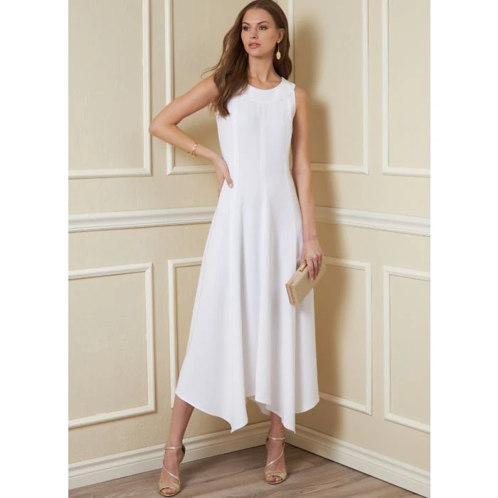 Vogue Sewing Pattern 1878 (E5) – Fitted & flared dress is close-fitting through bust & has shaped yoke, bias armhole binding, princess seams with topstitching, invisible back zipper, hook & eye closure, & stitched handkerchief hem with mitered points. Shop the Complete Vogue Sewing Pattern collection, including Vogue Sewing Pattern 1878 (E5) at Abakhan. FREE Delivery Available & Earn Loyalty Reward Points on All Purchases. Size 14-22.