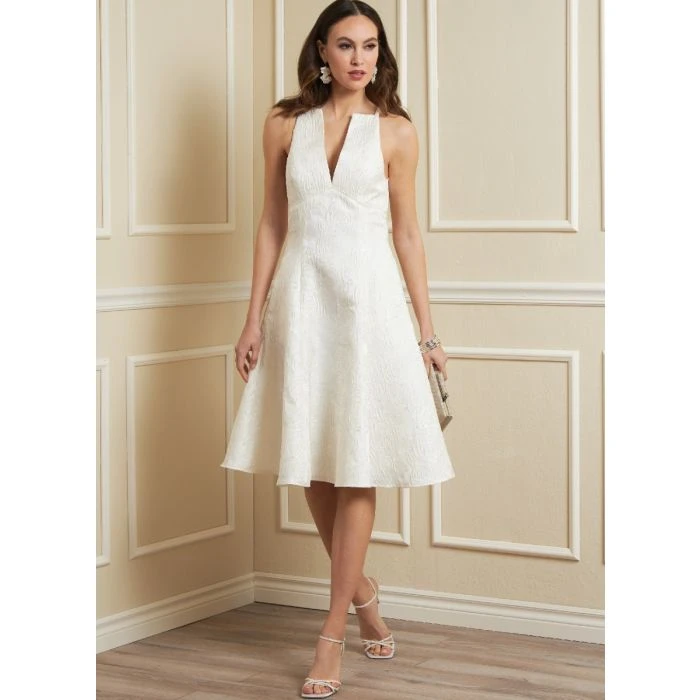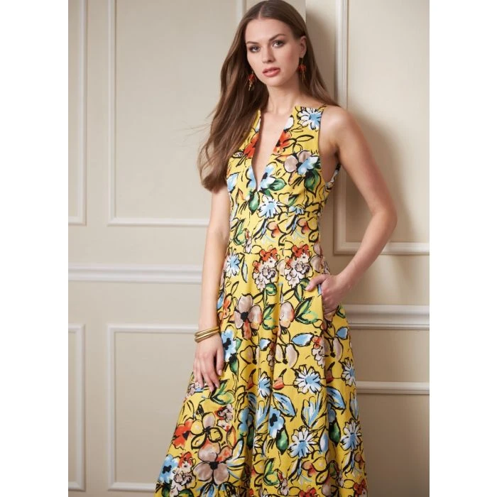 Vogue Sewing Pattern 1882 (Y5) – Fit & flare dress, lined, close-fitting through bust, has cut-in shoulders, deep V-neckline, empire waist seaming with topstitching, princess seams, side seam pockets, narrow straps, center back zipper, stitched hem, & length variations. Shop the Complete Vogue Sewing Pattern collection, including Vogue Sewing Pattern 1882 (Y5) at Abakhan. FREE Delivery Available & Earn Loyalty Reward Points on All Purchases. Size 18-26.