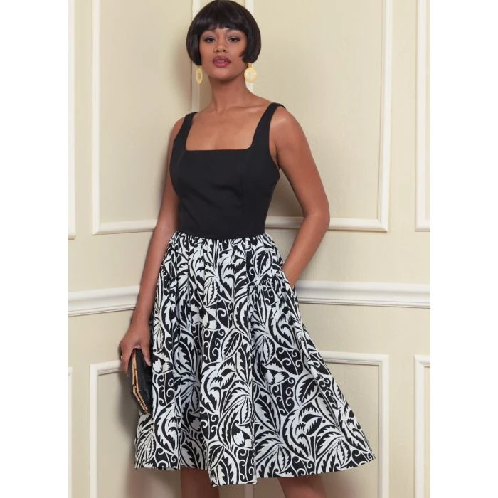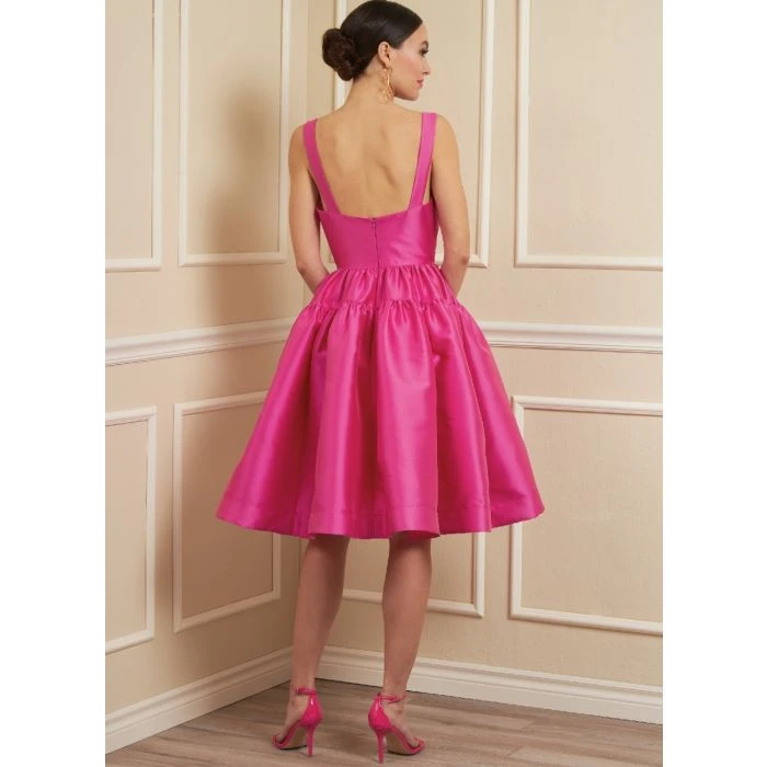 Vogue Sewing Pattern 1884 (E5) – Lined dress, close-fitting through bust & waist, has wide square neckline, flared skirt with diagonal gathers under the waistline, side seam pockets, low cut back with invisible zipper, stitched hem with horsehair braid, & contrast variations. Shop the Complete Vogue Sewing Pattern collection, including Vogue Sewing Pattern 1884 (E5) at Abakhan. FREE Delivery Available & Earn Loyalty Reward Points on All Purchases. Size 14-22.