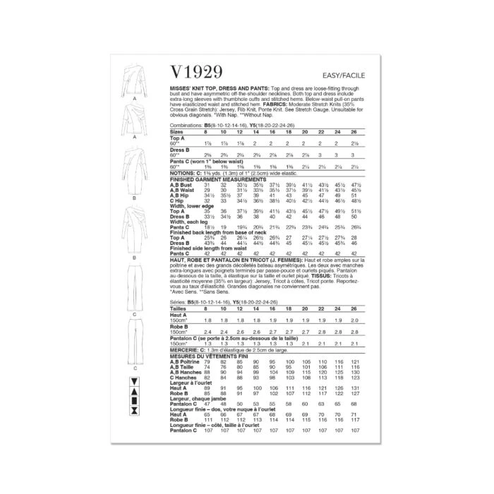 Be the first to review “Vogue Sewing Pattern 1929 (B5) – Misses Top Dress & Pants 8-16” Cancel reply