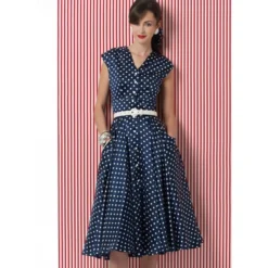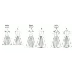 Vogue Sewing Pattern 8577 (FF) – Close-fitting, lined, flared dresses A,B,C have darts, front & back gathers, side front pockets with pocket bands & button front closing. A,B: sleeves. C: sleeves with cuffs. A: mid-knee length. B,C: lower calf length. Shop the Complete Vogue Sewing Pattern collection, including Vogue Sewing Pattern 8577 (FF) at Abakhan. FREE Delivery Available & Earn Loyalty Reward Points on All Purchases. Size 16-22.