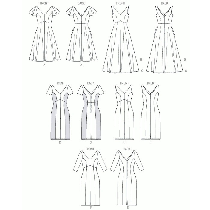 Vogue Sewing Pattern 8997 (E5) – Lined dress has princess seams, close-fitting bodice, raised waist, stitched hems, back zipper, & unlined sleeve variations. A: sleeve, & narrow hem. B & C: sleeveless. A,B,C: flared skirt. D,E,F: semi-fitted skirt, & back slit. Shop the Complete Vogue Sewing Pattern collection, including Vogue Sewing Pattern 8997 (E5) at Abakhan. FREE Delivery Available & Earn Loyalty Reward Points on All Purchases. Size 14-22.