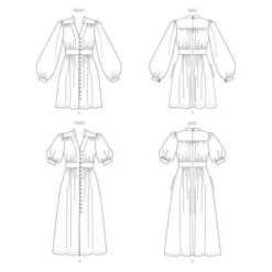 This Vogue Sewing Pattern V1934 (Y5) Misses’ Dress in Two Lengths is a Dress with stand collar, yoke, front band at raised waist, front buttons with bias loops, side seam pockets, and invisible back zipper in two lengths and two sleeve options. View A features crosswise grain designed for double border prints.